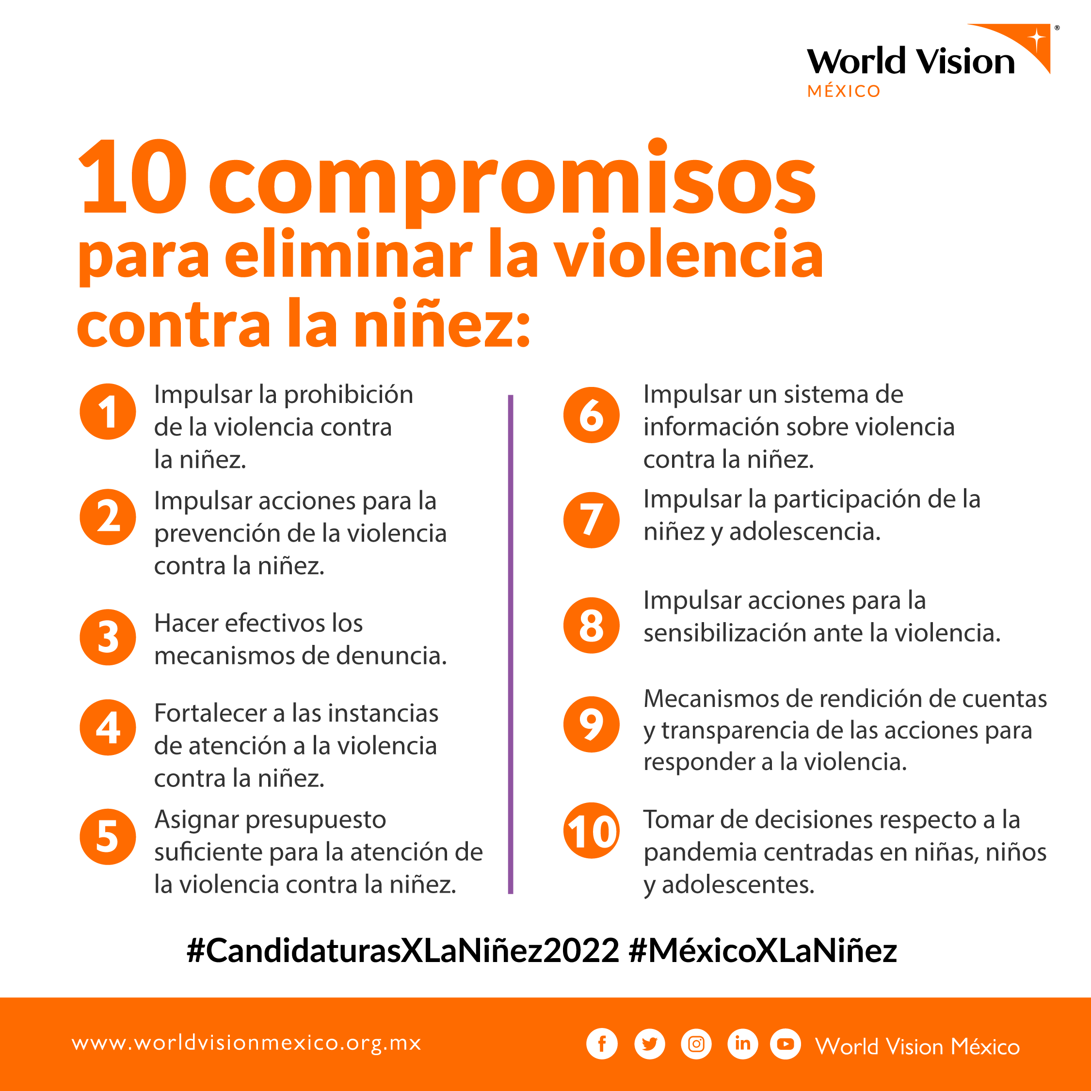 Las candidatas y los candidatos, se comprometen a impulsar mecanismos de sensibilización para prevenir, informar y responder a todo tipo de violencia contra la niñez. Las candidatas y los candidatos se comprometen a impulsar campañas de concientización de todo tipo de violencia contra niñas, niños y adolescentes para prevenirla.